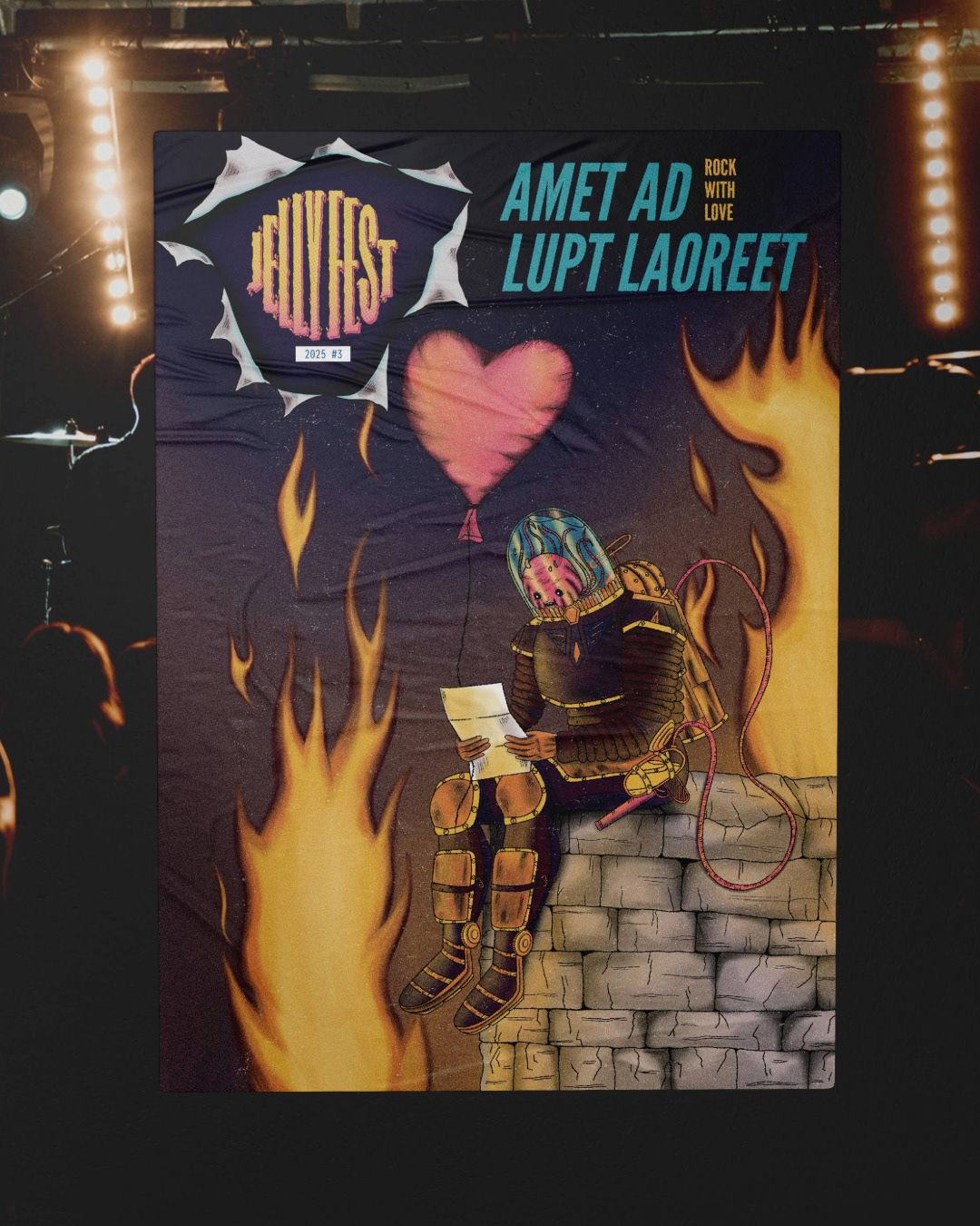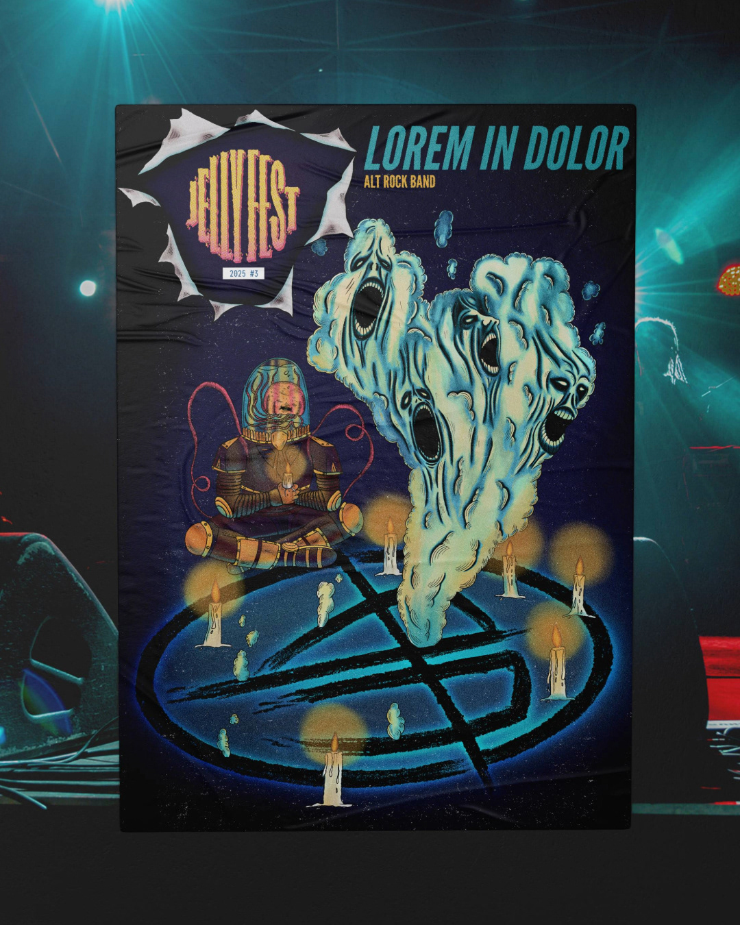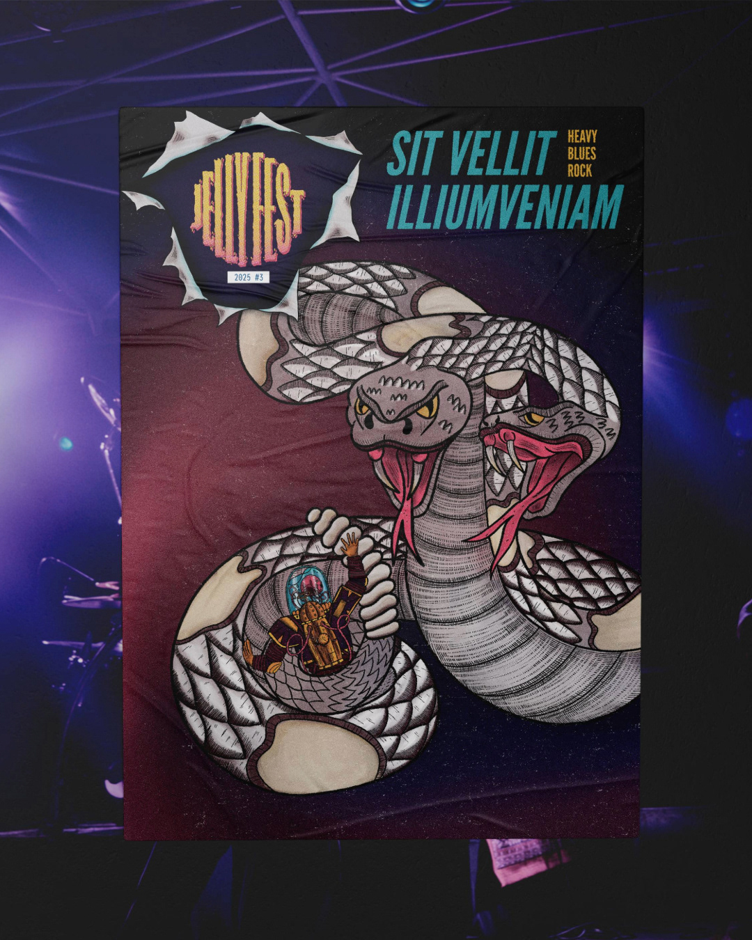 J'ai a eu la chance de collaborer une dernière fois avec le Jellyfest, un festival de rock savoyard. L'édition n'aura malheureusement pas lieu pour des raisons économiques, mais voici les visuels sur lesquels j'ai travaillé pour cette édition ; Le visuel de saison et les illustrations pour les différents groupes programmés.